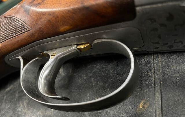 Coxy’s new trigger was specially made by Gunsmith James MacAdam. The angle of the trigger is pitched to OFF and shaped so that the trigger-finger locates to it physically – a genuine ‘locking in’ to the trigger – which Coxy liked.