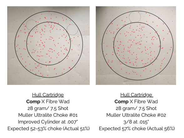 Both patterns are good: decent pellet distribution and few holes (or ‘patches’). The inner cores of both patterns are a little ‘hot’ and Coxy would have known and liked that. Dropping a shot size to 8 would make both patterns absolute smokers! Again, Coxy would have known that.