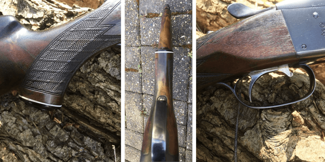 Such features were common on stocks dedicated to trap shooting at the time. Fashions change, of course they do, but actually the Kreighoff 32’s grip as presented here is a true reflection of patterns favoured on sporting stocks today. An added bonus in our repurposing mission.